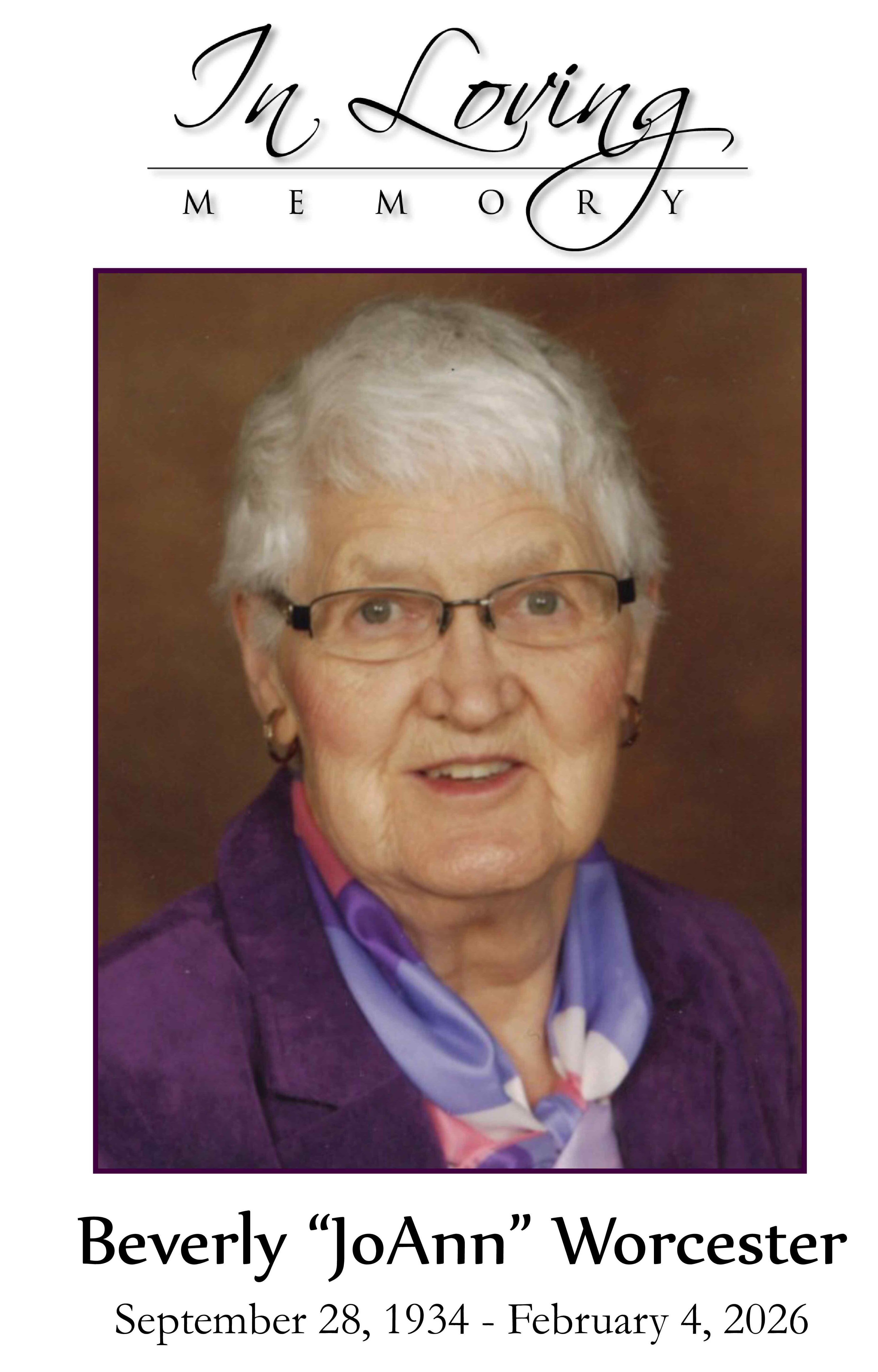 Beverly JoAnn Worcester, age 91, of Perham, passed away on February 4, 2026.