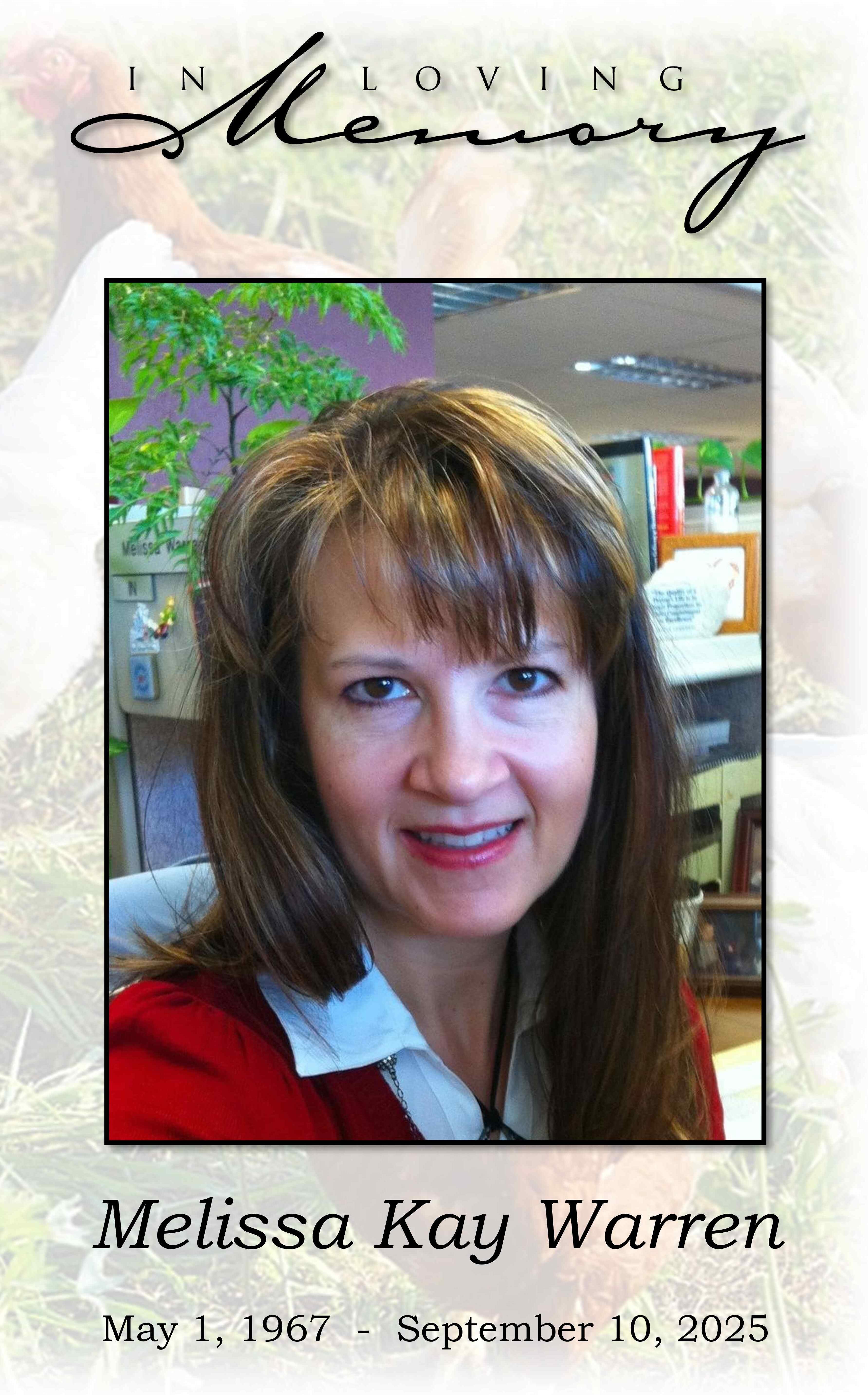 Melissa Kay Warren passed away on September 10, 2025, in Fargo, ND, after a short battle with a very aggressive case of Stage IV Metastatic Breast Cancer.