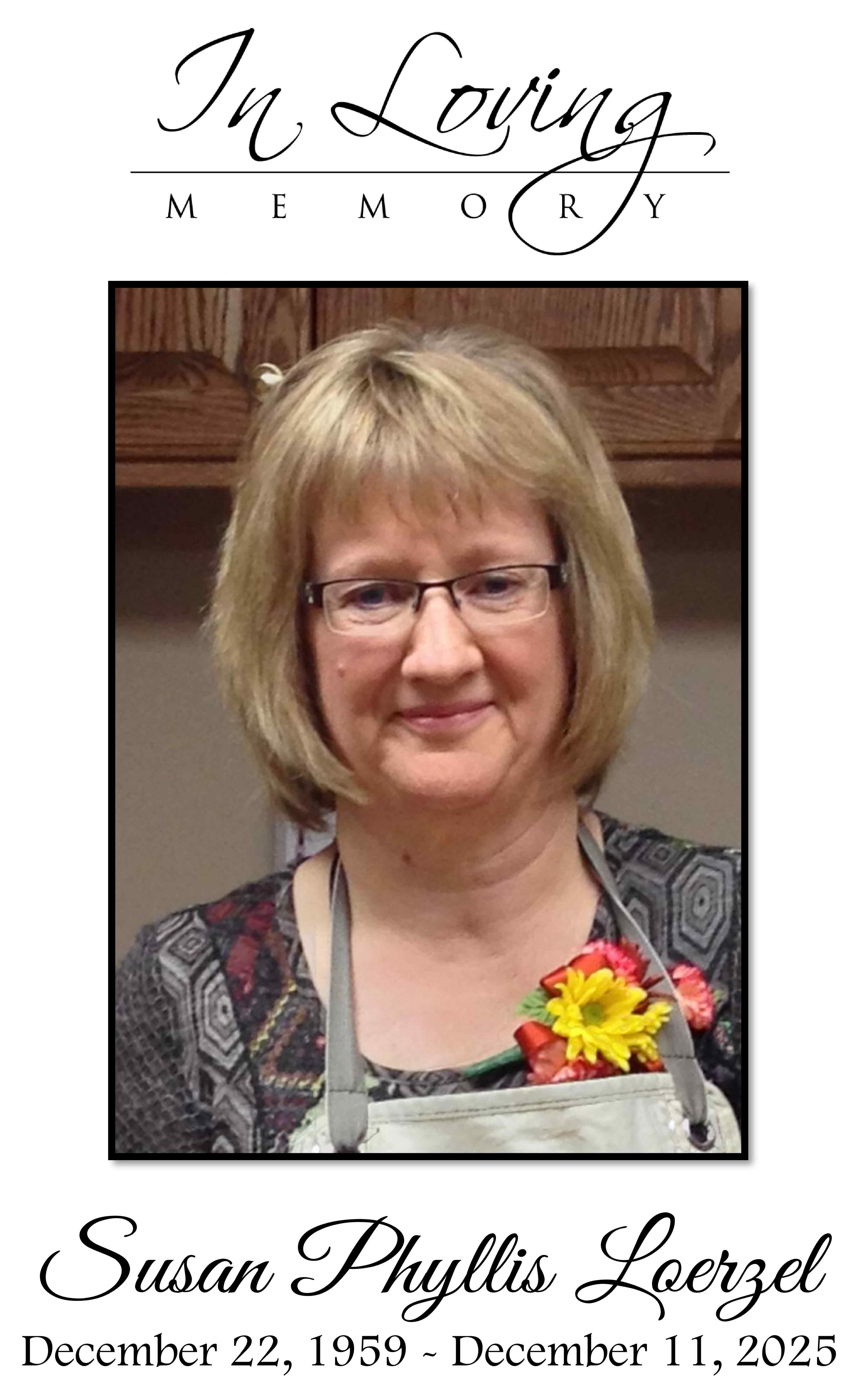 Susan P. Loerzel, age 65 of Perham, MN, passed away in her home on December 11, 2025 after a four-year battle with cancer. She is now free from pain and suffering and is in the loving arms of Jesus.