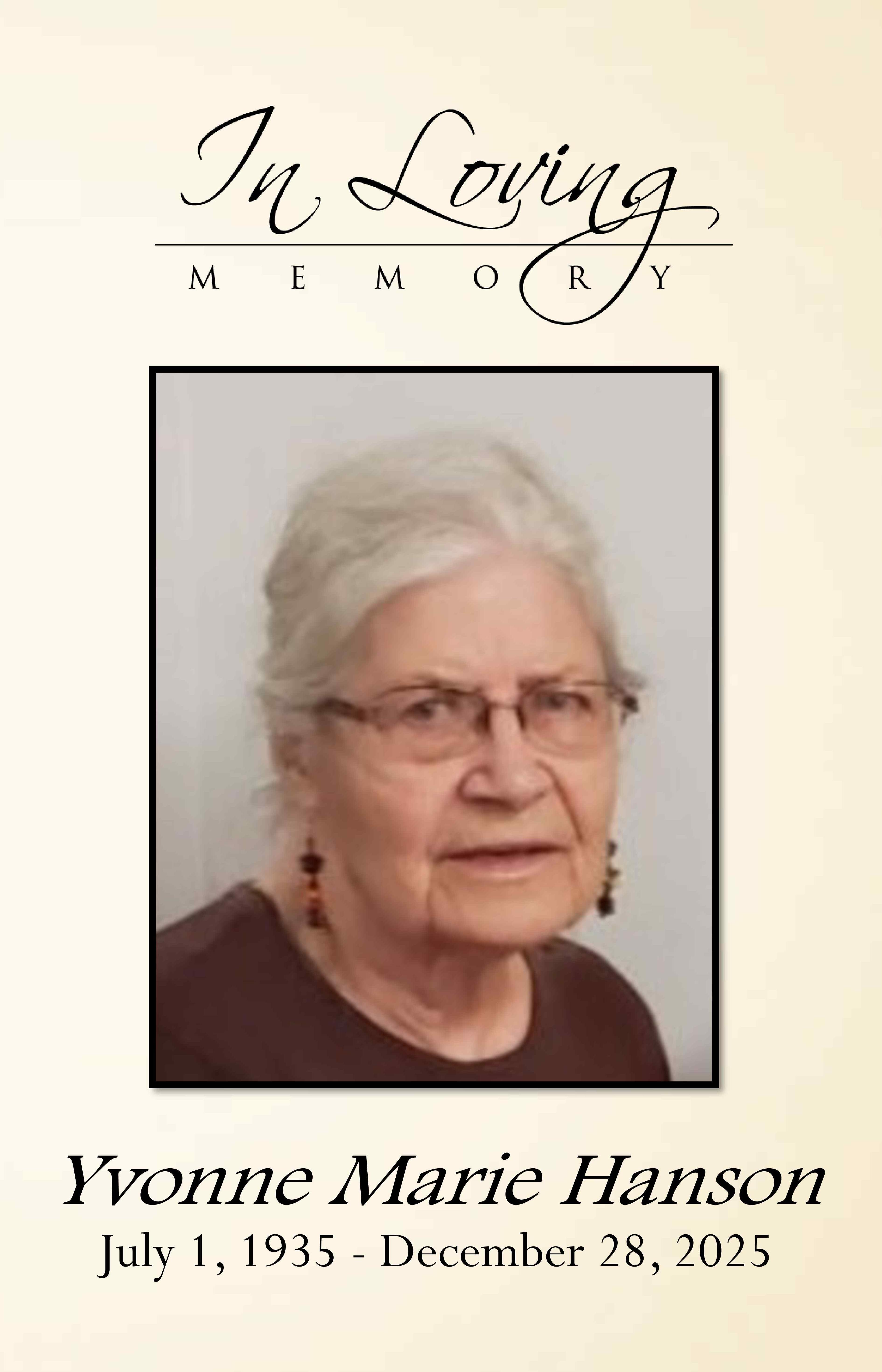 Yvonne Marie Hanson, age 90 of Dent, MN entered heaven on December 28, 2025.
